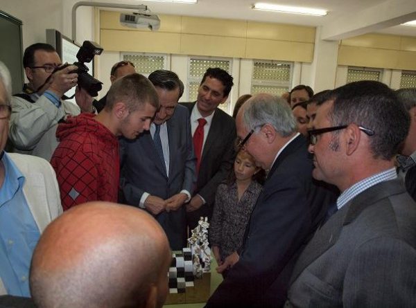 Durante las cuatro horas de permanencia en el centro que lleva su nombre, además de los numerosos estudiantes que en todo momento le arroparon con su cariño, abrazos, besos y admiración, Patarroyo prestó gran atención a una exposición de carteles sobre él dibujados por sus estudiantes y visito una exposición de tableros y fichas de ajedrez, diseñados y realizados por los alumnos del Departamento de Plástica.